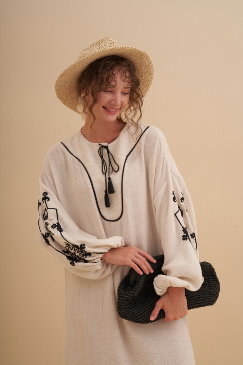 Our suit is made of satin. It has a stand-up collar. It has cuff sleeve detail. It has a mobile belt. Pants The waist part is elastic. It has double pockets and wide legs