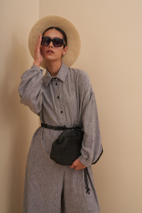 The vest is made of plush fabric. Our vest has lacing and leather details on the inside.